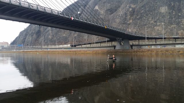 Замер берегов в месте модификаций над валом фарватера Дечин - Дечин